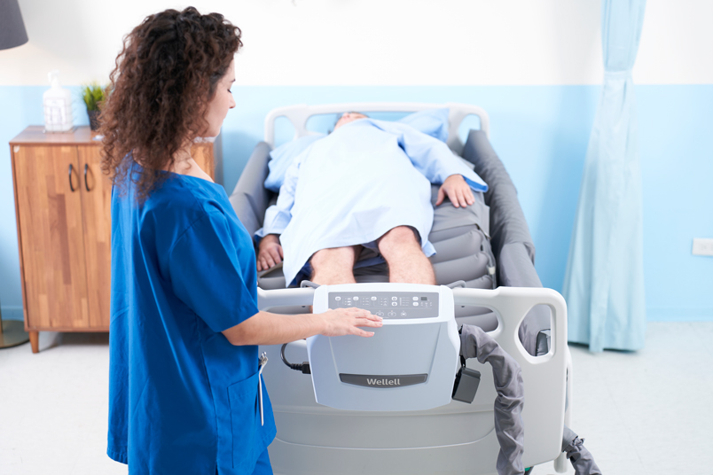 Optima Turn optimizes care delivery process by providing automate workflow, it automatically redistributes pressure for different patient contours and improves full-body pressure relief care and comfort through better immersion and envelopment. Caregivers can implement automated turning cycles with customizable frequencies (10, 20, 30 or 60 minutes) and angles (10, 20 or 30 degrees). This significantly reduces time and cost of wound care in hospitals. In addition, automated turn feature significantly reduces complexity of patient turn procedure and nursing workload with minimal manual intervention, this is very helpful especially in critical care environment.
