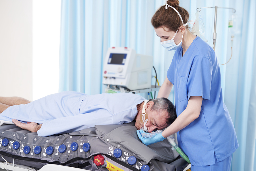 Prone positioning during mechanical ventilation is strongly recommended in adults with ARDS, but entails an increased risk of complications; specifically, pressure injury. Thus, ensuring the patient is correctly positioned and protected from injury is a crucial activity. Patients remain in the prone position for at least 12 hours with the head repositioned every 2–4 hours. Moving patients into and out of a prone position is labor-intensive, requiring numerous highly trained staff members.6