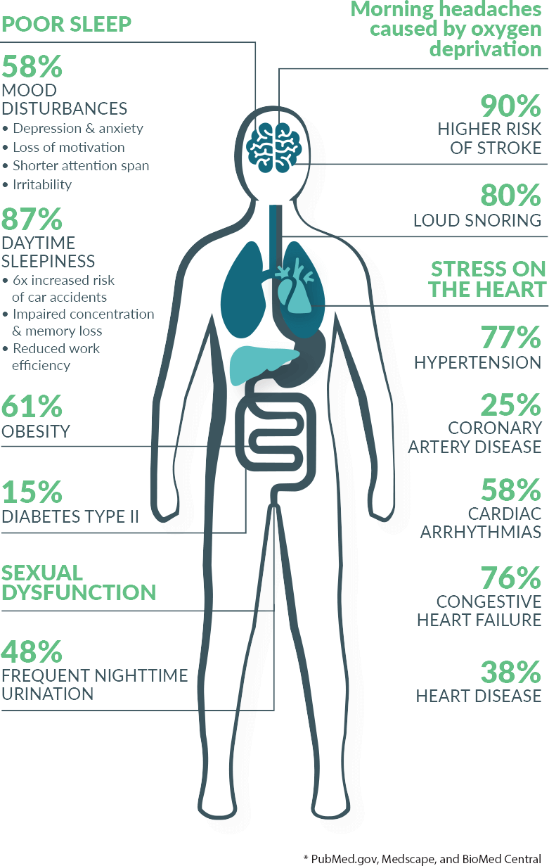 Untreated sleep apnea can quickly worsen the severity and develop as obstructive sleep apnea, leading to devastating medical conditions and complications, including: